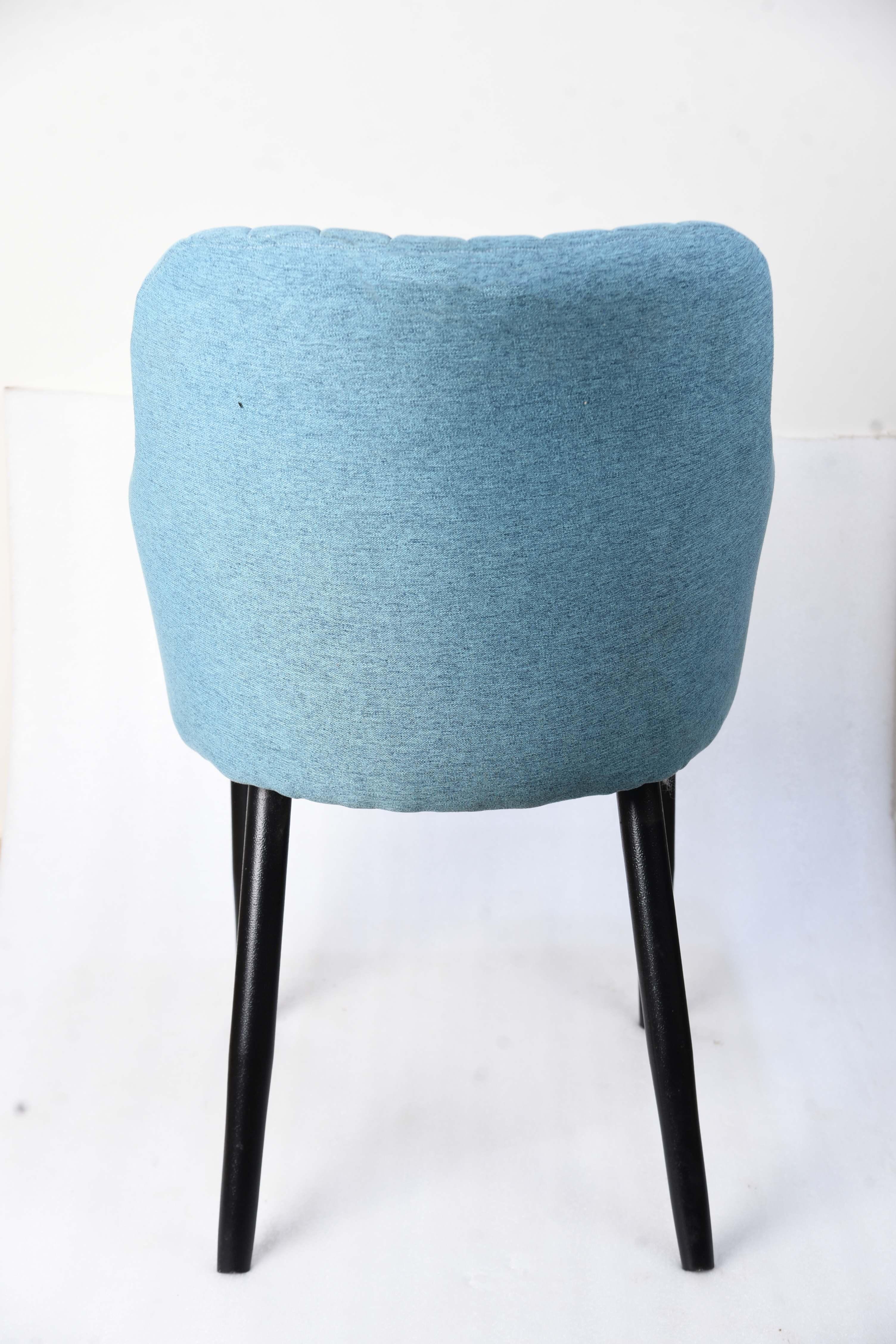 كرسي طعام بتصميم مميز يجمع بين الراحة والأناقة. يتميز بمسند ظهر مبطن بخطوط طولية أنيقة تضفي عمقًا بصريًا، وذراعين مدمجين لتوفير دعم إضافي. لونه الأزرق الفاتح يجعله مثاليًا لإضافة لمسة من الحيوية والهدوء إلى غرفة الطعام أو المكتب.