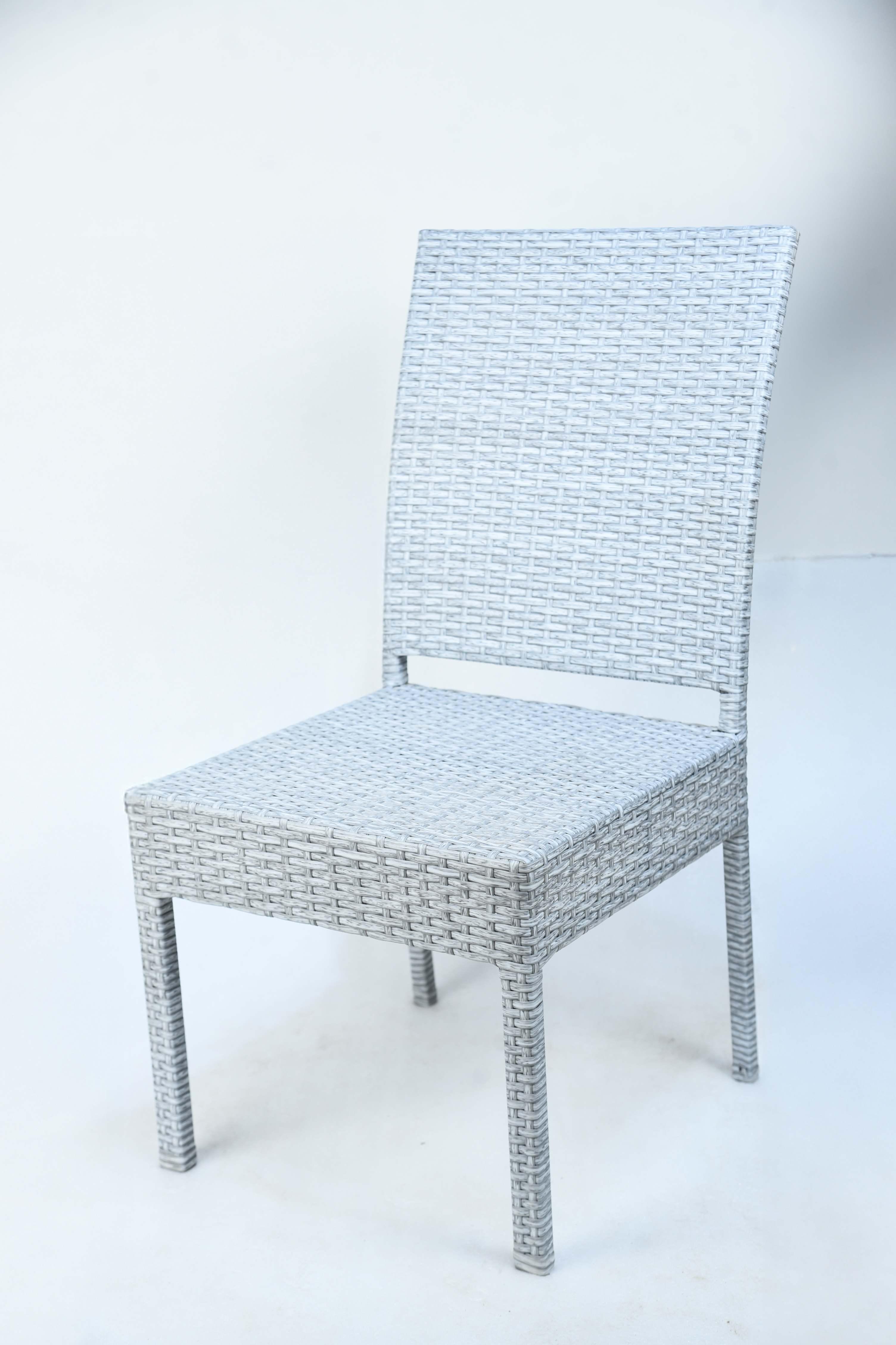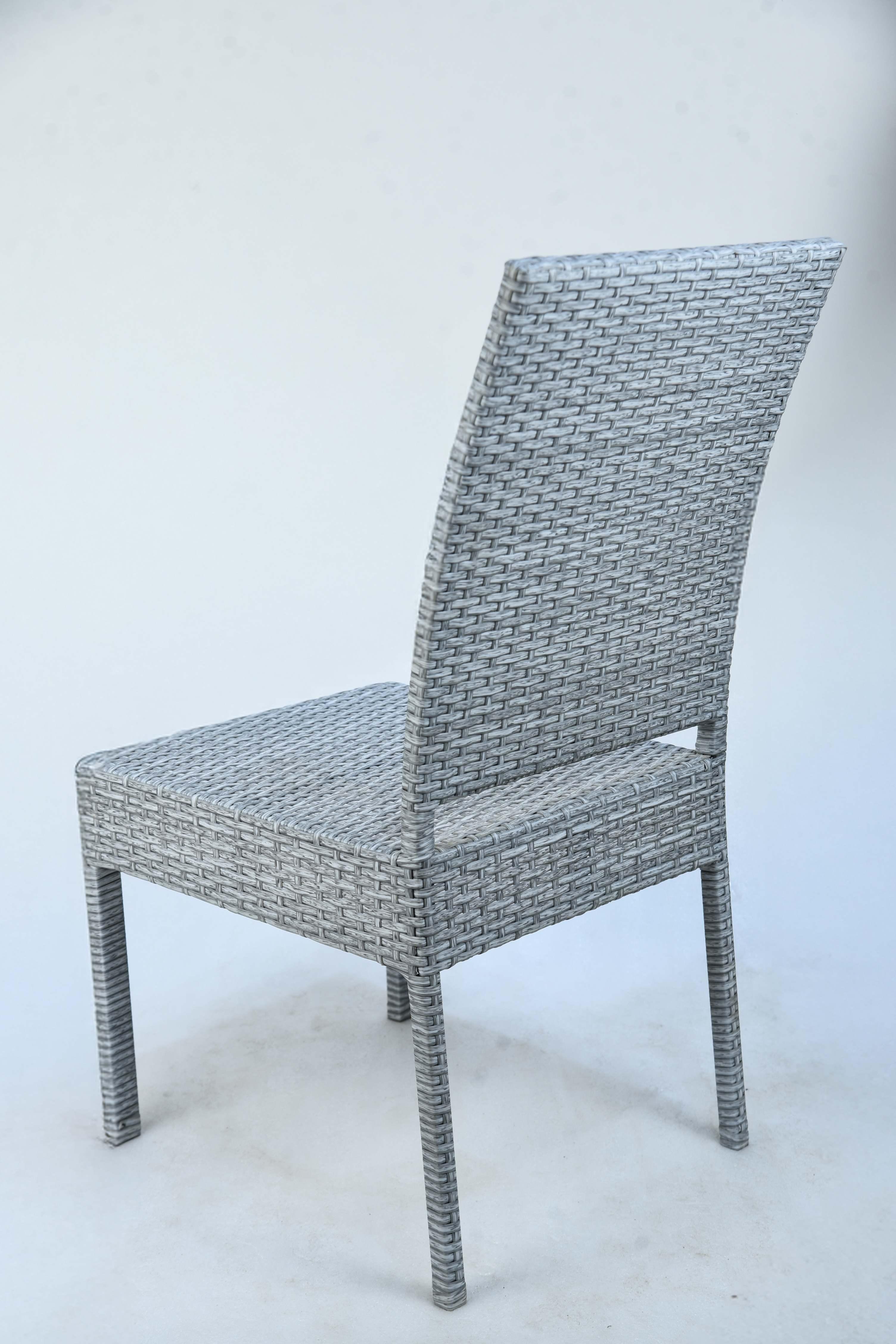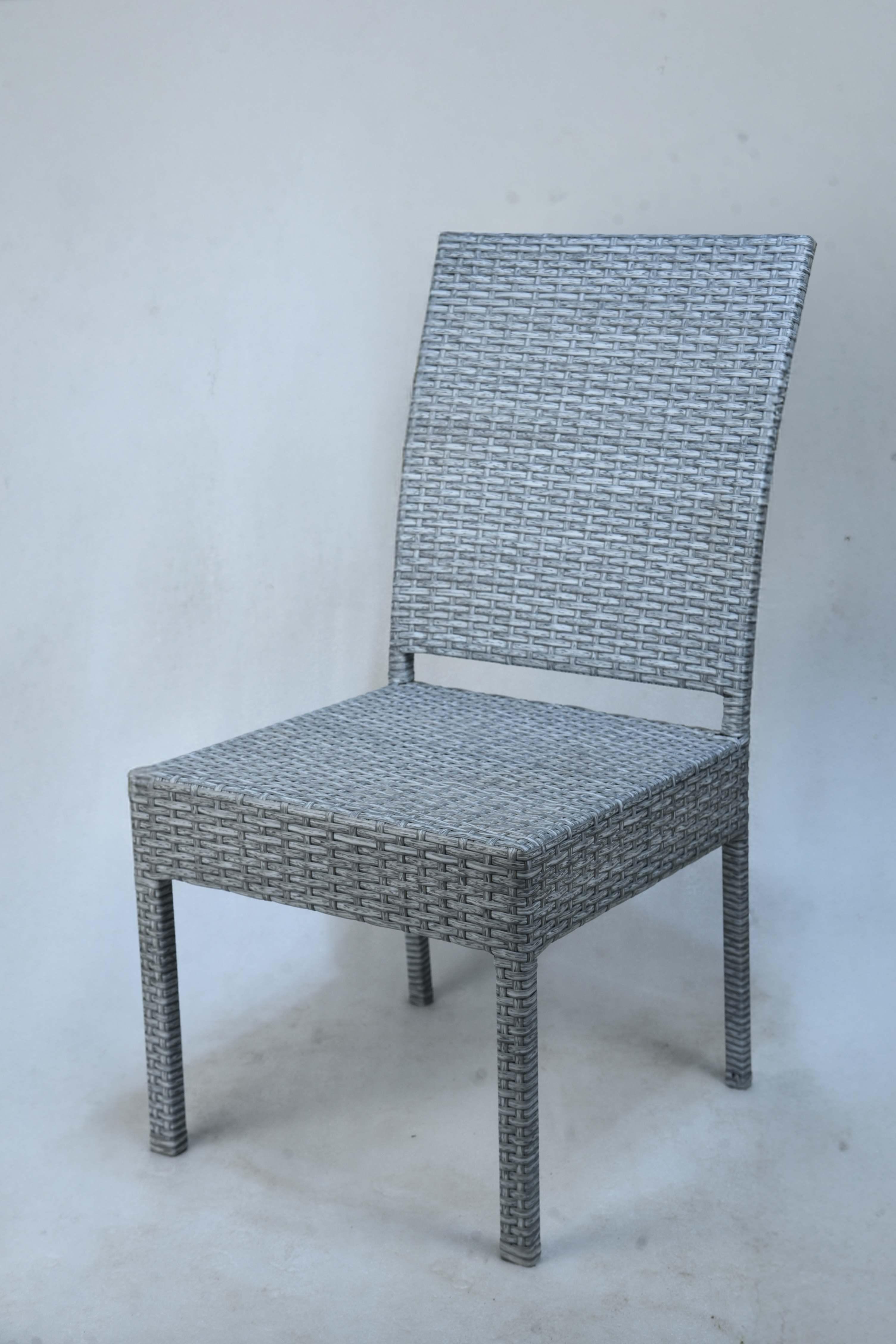 The Gray Wave Chair is a practical and stylish addition to outdoor spaces. Featuring a simple and modern design, it's crafted entirely from high-quality gray synthetic rattan, durably woven to withstand various weather conditions. The chair offers comfortable seating with a high backrest that provides good back support, making it ideal for dining or relaxing in the garden or on the terrace. Its muted gray color adds a touch of contemporary elegance to any space. A seat cushion can be added for added comfort. Materials: