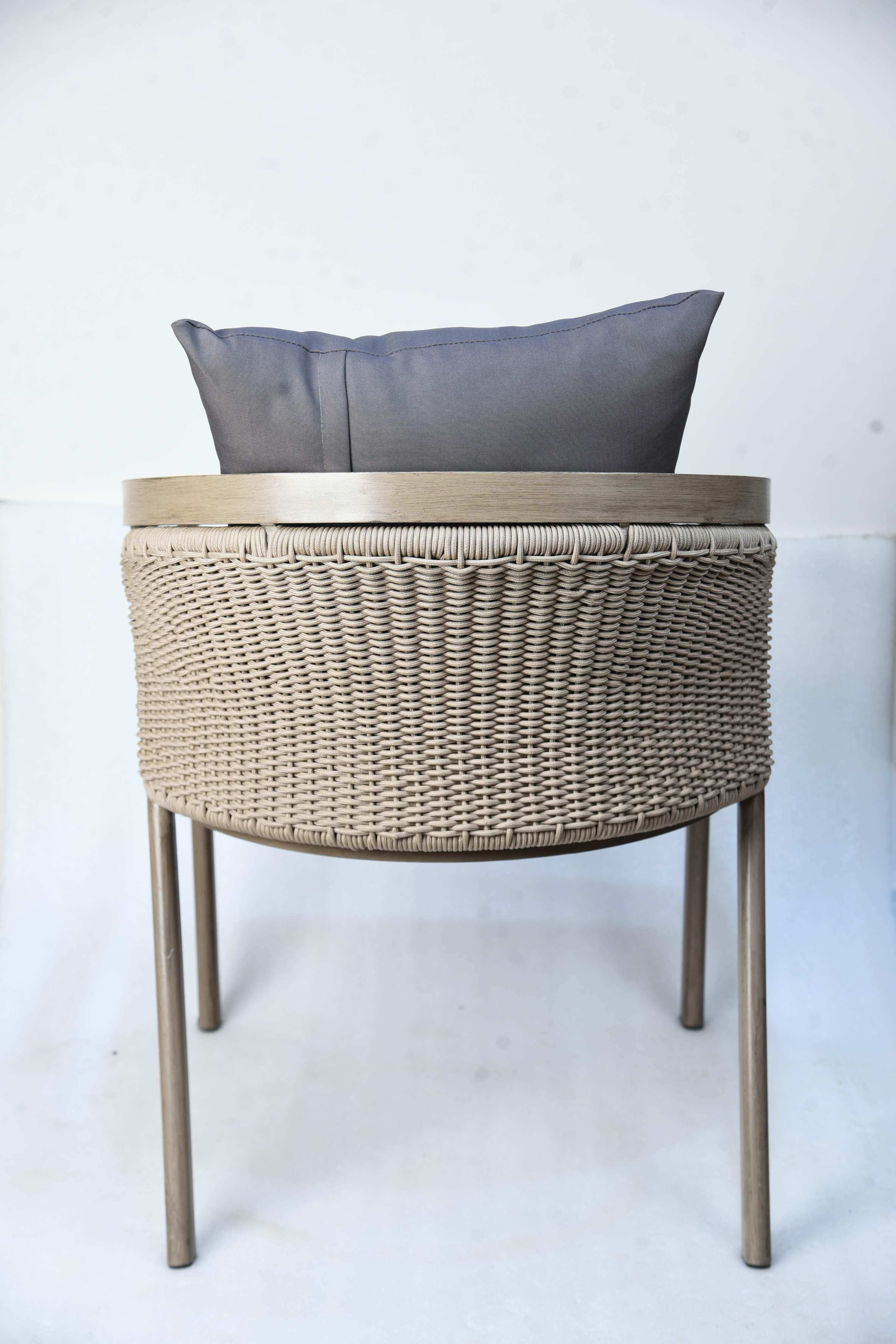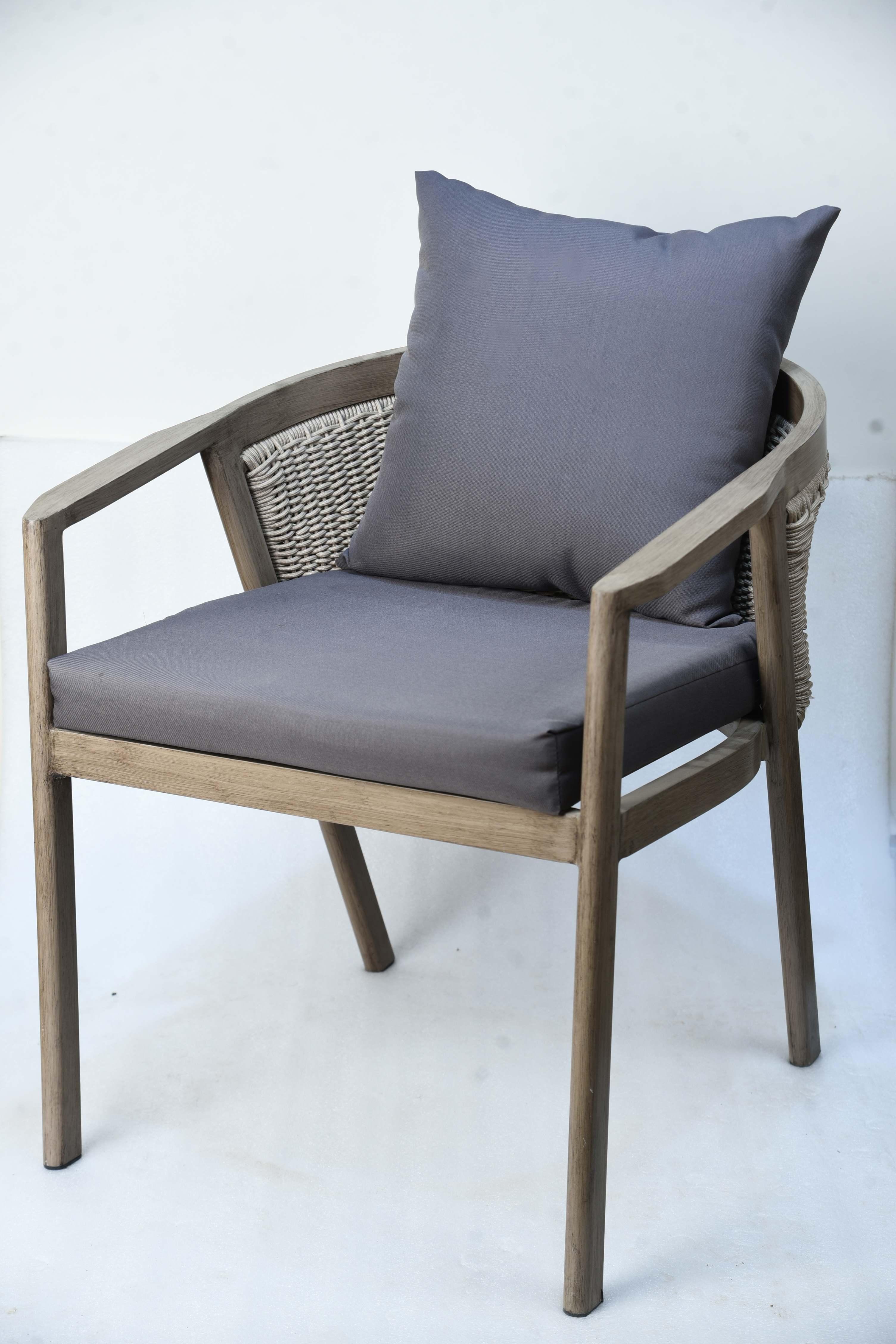 The Oakland chair is the perfect piece of furniture for outdoor spaces seeking a touch of nature and elegance. It features a sturdy frame made from high-quality wood (such as teak or eucalyptus), giving it a warm appearance and excellent weather resistance. The design is highlighted by the backrest made from synthetic rattan braids, combining the natural beauty of braids with the durability of synthetic materials. The seat and back cushions are dark gray and made from water- and fade-resistant fabric, ensuring they maintain their quality under sun and rain. Materials: