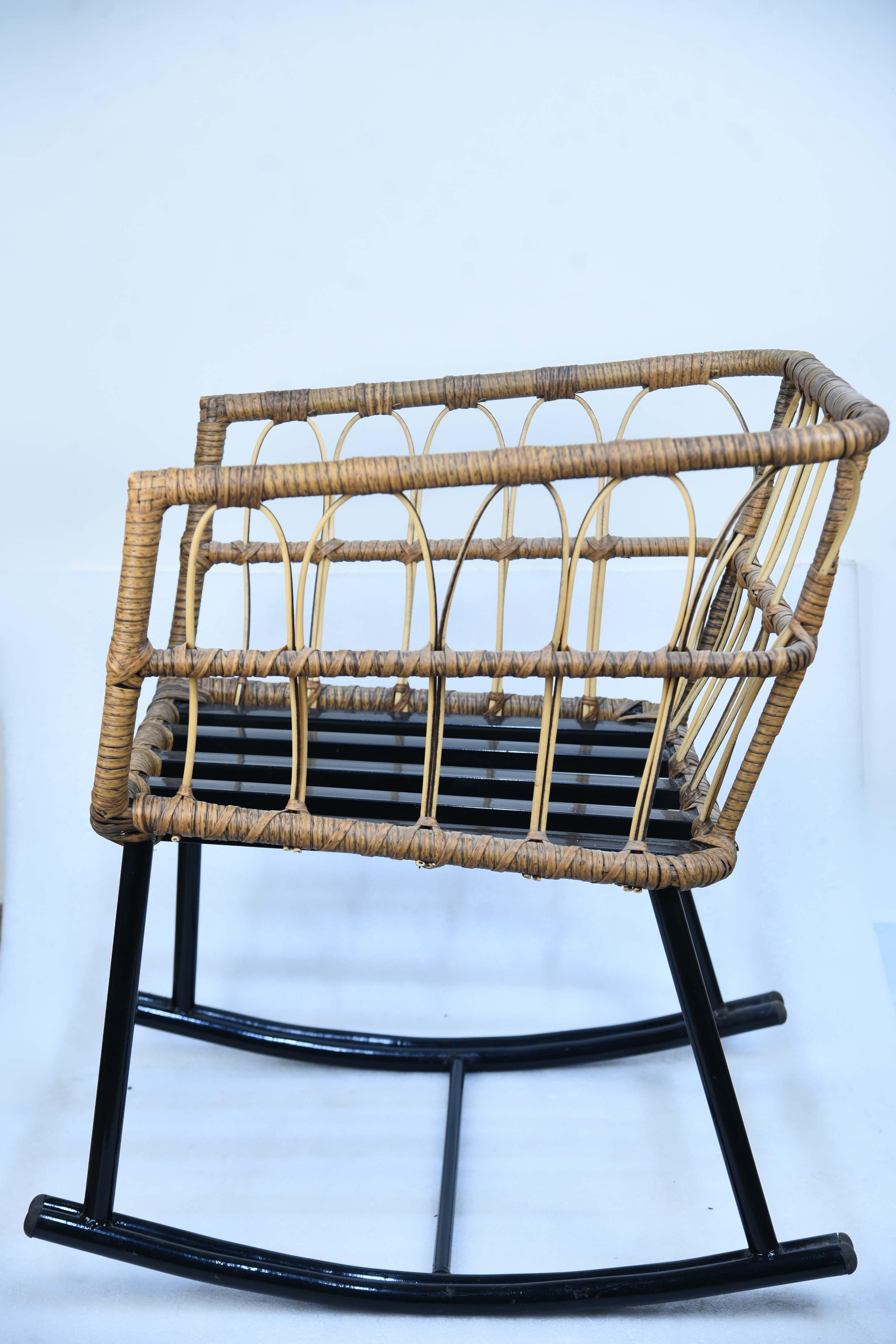 The Rocking Natura Rocking Chair is a unique piece of furniture, designed to provide maximum comfort and relaxation with a natural aesthetic. Its design combines the rustic beauty of handwoven fabrics with the strength of a metal frame. The seat and backrest feature an elegant basket weave made of straw or rattan in a warm natural color, adding a touch of rustic elegance to any space. The base is made of sturdy black metal with a rocking design, ensuring quiet, comfortable movement that helps you relax and enjoy your time. Materials: